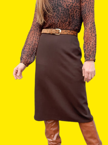 Jupe crayon vintage Ava - Marron. Taille XL, 42, 44. Caroline Rohmer
