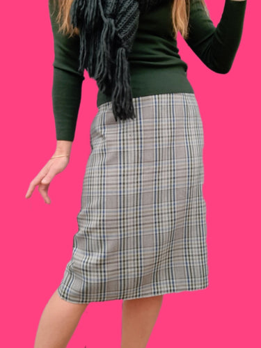 Jupe vintage Ève - Imprimé prince de Galles. Taille XL, 42, 44. Made in France.