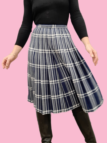 Jupe vintage Camille - Plissé Ecossais bleu marine et blanc. Taille S, 36, 38.
