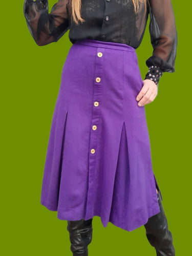 Jupe plissée vintage Lou - Boutonnée. Laine violette. Taille S, 36, 38. Made in France. Céline Soria