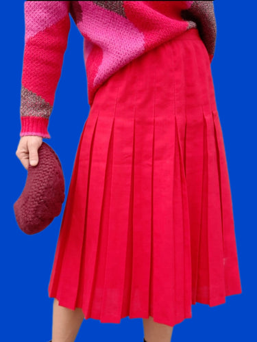 Jupe vintage Molly. Plissée rouge. Longueur midi. Taille L, 40, 42. Made in France