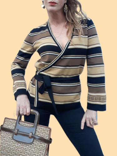 Cache-cœur "Seconde" Zoé - Pierre Balmain. A rayures marrons et beiges. Taille L, 40, 42