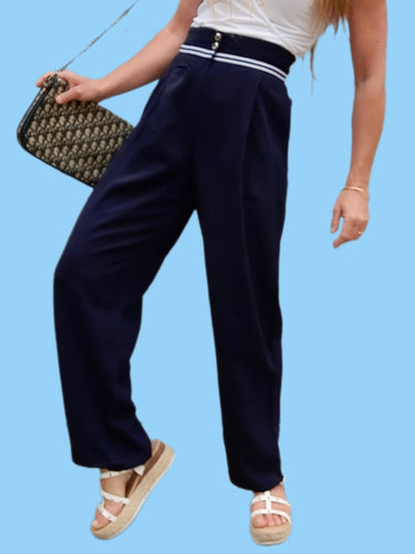 Pantalon vintage Thélma - Taille haute esprit Marin. Taille S, 36, 38