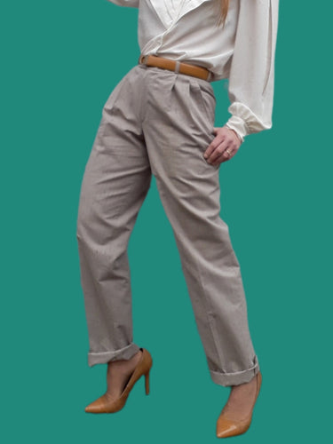 Pantalon vintage Stephen - Coton beige. Taille M, 38, 40. Fabriqué en France