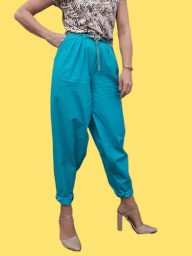 Pantalon vintage Romy - Bleu turquoise. Coupe XXL.Taille S, 36, 38. Fabriqué en France