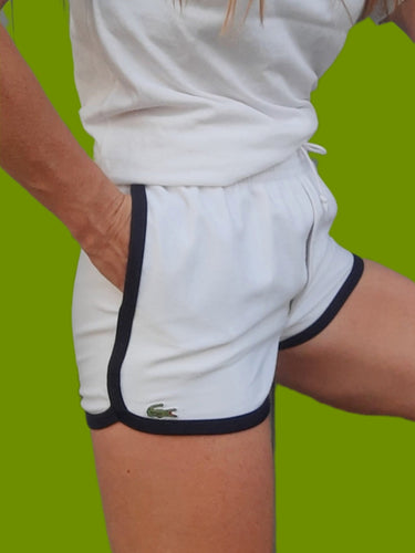 Short vintage Kylie - Blanc et bleu marine. Taille XS, 34, 36. Lacoste. Made in France