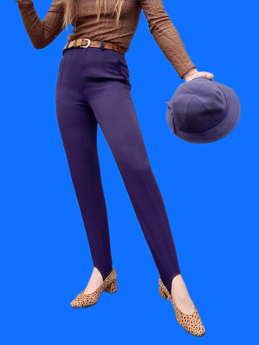Pantalon vintage Marthe - Fuseau taille haute violet. Taille XS, 34, 36. Carole Richard. Made in France.