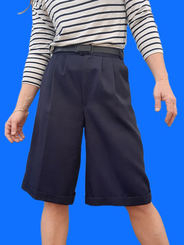 Short vintage Camille - Bleu marine à pinces. Taille S, 36, 38. Sym.