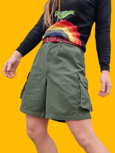 Short vintage Louisia - Militaire. Poches Cargo. Vert Kaki. Zone 5. Taille XL, 42, 44.