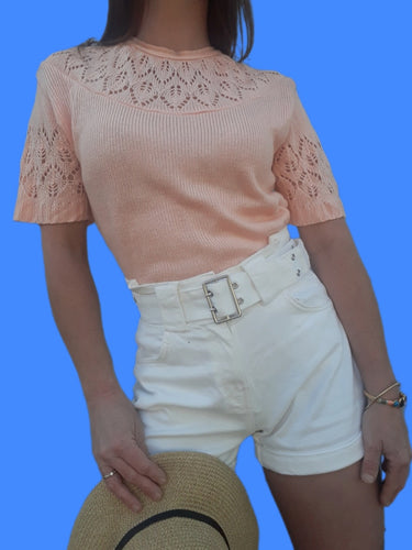 Pull d'été vintage Lucille - Encolure ronde ajourée. Taille S, 36, 38