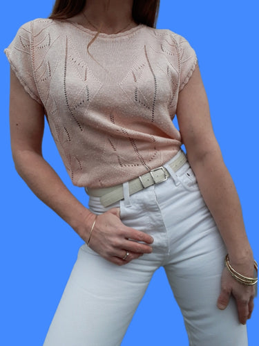 Pull d'été vintage Cassie - Mailles ajourées roses. Taille M, 38, 40. Fabriqué en France