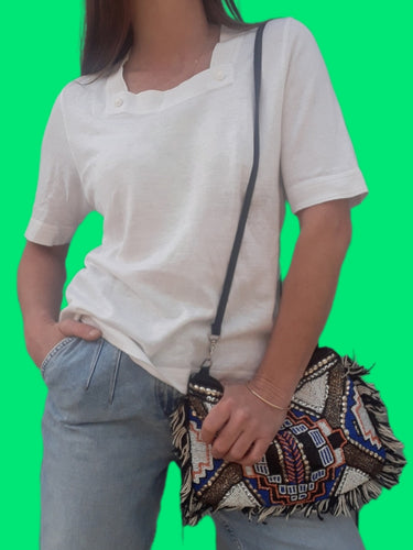 Pull d'été vintage Célia - Col carré. Taille M, 38, 40. Fabriqué en France