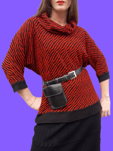 Pull-over vintage Clarisse - Zébré Red & black. Taille M, 38, 40
