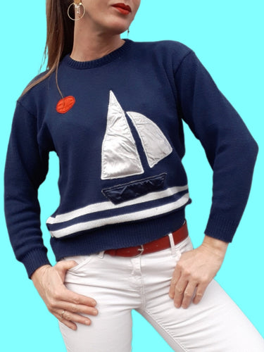 Pull-over vintage Olivia - Marine. Taille S, 36, 38. Fabriqué en France