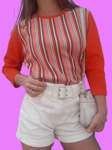 Polo vintage Marielle - Rayé. Orange et blanc .Taille M, 38, 40