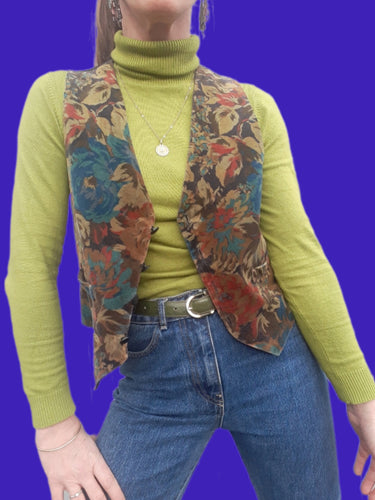 Veston vintage Solène - Panne de velours fleuri. Taille M, 38, 40. Fabriqué en France