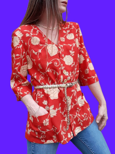 Veste vintage Suzanne - Imprimé fleuri. Taille L, 40, 42. Fabriqué en France