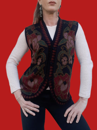 Gilet vintage Billie - Broderies florales. Taille M, 36, 38. Fabriqué en France