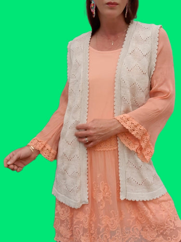 Cardigan vintage Lydia - Mailles ajourées. Col V profond. Taille L, 40, 42. Made in France