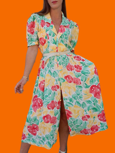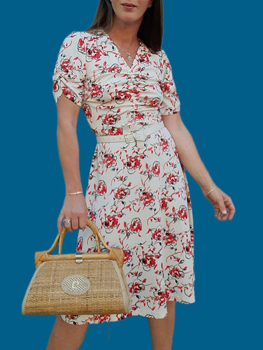 Robe vintage Veronica - Pin-up. Imprimé floral. Taille M, 38, 40. Made in France.