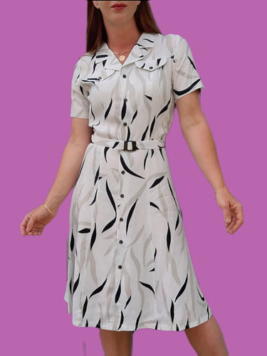 Robe vintage Margault - Zébrée grise et noire. Toute boutonnée. Taille S, 36, 38.
