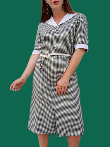 Robe vintage Solange - Imprimé pied de poule noir & blanc. Taille M, 38, 40. Weinberg. made in France.