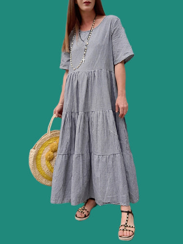 Robe longue Fanny - Baby Doll Vichy noir et blanc. A volants. Taille L, 40, 42