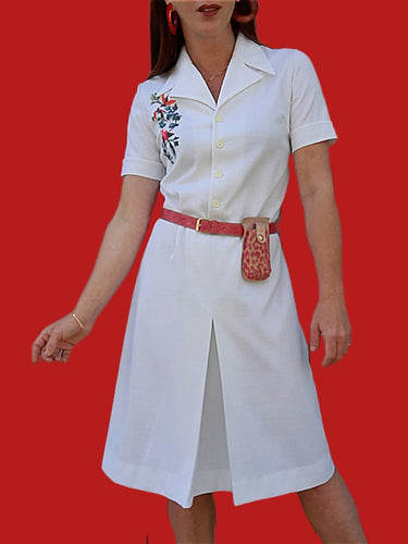Robe vintage Adèlia - Tissu texturé, oiseaux sur la poitrine. Taille S, 36, 38. JV Style