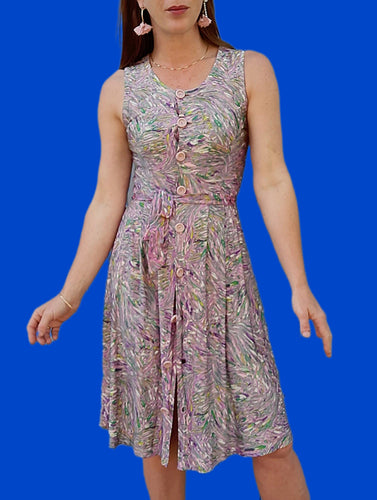 Robe vintage Donna - Tissu texturé parme, anis, vert et blanc. Taille XS, 34, 36