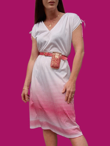 Robe vintage Heidi - Blanche dégradé de pois rose fuchsia. Taille M, 38, 40