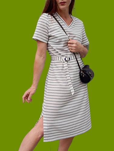 Robe vintage Alwina - Tissu gaufré rayé rose et blanc. Taille M, 38, 40. Made in France