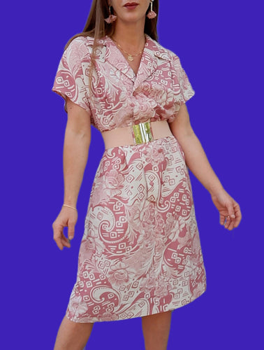 Robe vintage Nadia - Maxi paisley vieux rose, double boutonnage. Taille XL, 42,44