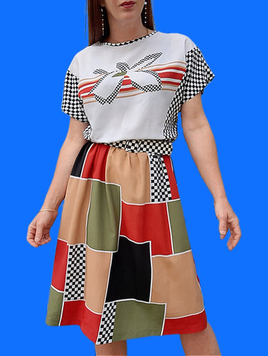 Robe vintage Élisa - A damier coloré. Taille M, 38, 40. Made in France.