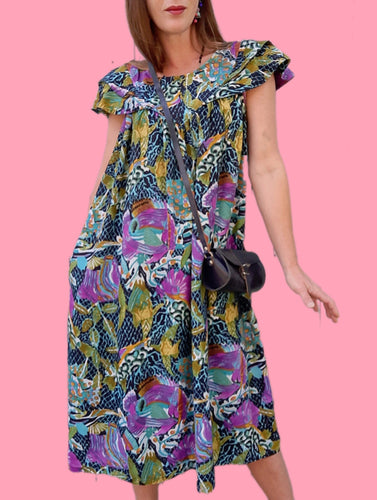 Robe vintage Mérédith - Imprimé filet de pêche. Taille XL, 42, 44.