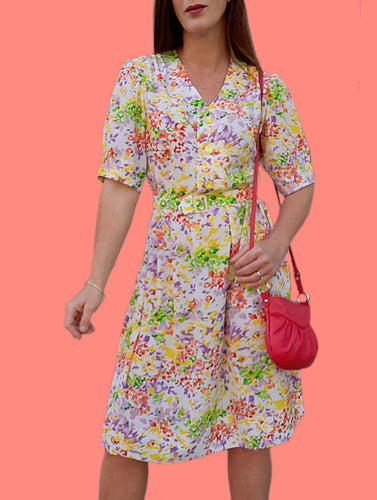 Robe vintage Grâce - Manches papillon. Fleurie. Taille S, 36, 38. Made in France.
