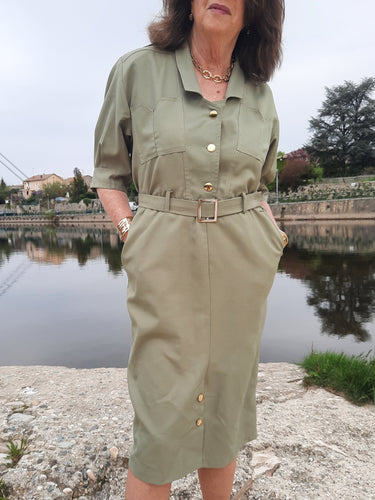 Robe vintage Loéline - Saharienne kaki. Taille XL, 42, 44. Made in France.
