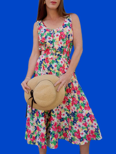 Robe vintage Eliane - Fleurs multicolores. Taille XL, 42, 44. Sans manche