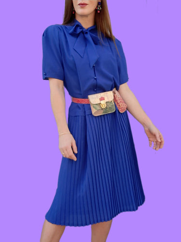 Robe vintage Luna - Plissé soleil et col Lavallière. Taille XL, 42, 44