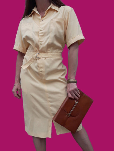 Robe vintage Diane - Jaune clair. Taille XL, 42, 44. Fabriqué en France