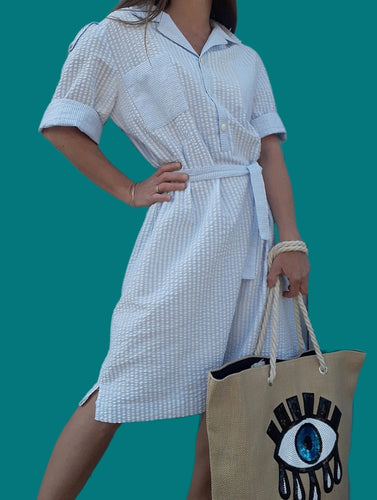 Robe vintage Pauline - Coton rayé. Taille L, 40, 42. Fabriqué en France