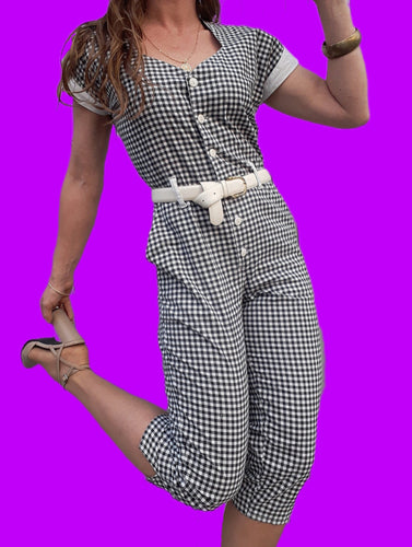 Combinaison vintage Amélie - Vichy noir & blanc. Taille S, 36, 38