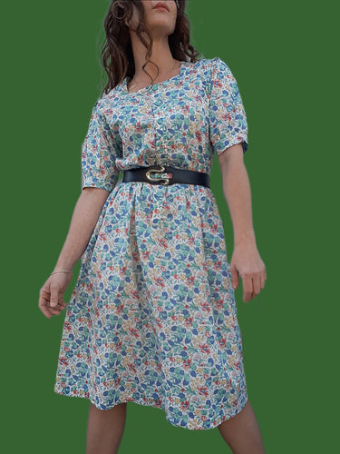 Robe vintage Dorine - Imprimé floral. Taille M, 38, 40. Fabriqué en France