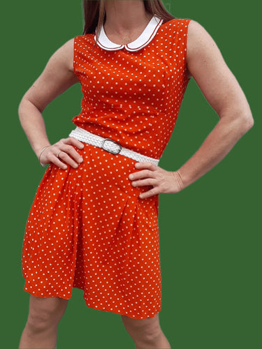 Robe vintage Florence - Rouge à pois blancs. Col Claudine. Taille S, 36, 38.