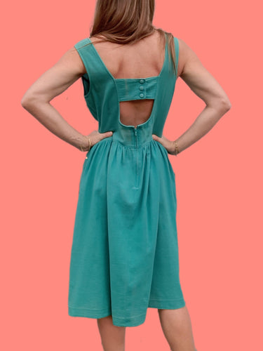 Robe vintage Dorine - Verte au dos dégagé. Taille XL, 42, 44. Carole Richard. Made in France.