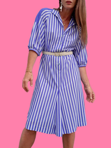 Robe vintage Martha - A rayures bleues et blanches. Taille M, 38, 40. Elvi Couture. Made in Holland.