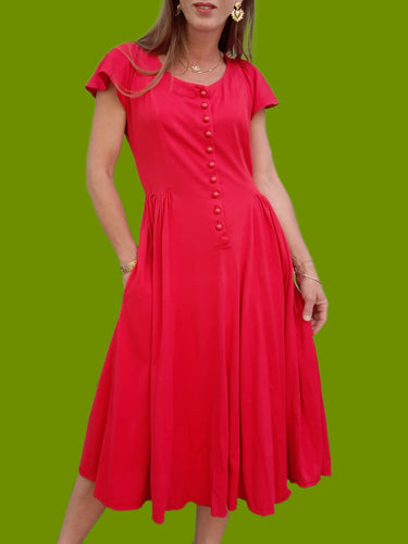 Robe vintage Karine - Rouge dos à lacets. Taille M, 38, 40. Anelle Boutique. Made in France.