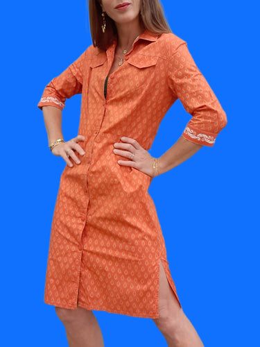 Robe vintage Angèle - Coton imprimé Camarguais orange. Taille S, 36, 38. Les Olivades.