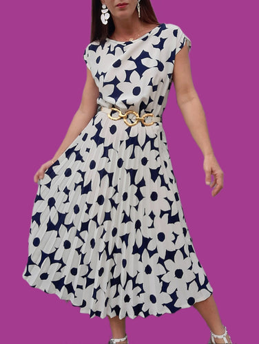 Robe vintage Estelle - Plissé permanent fleuri. Taille S, 36, 38. Varouj. Canne.