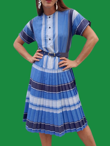 Robe vintage Manon - Imprimé rayé. Plissé permanent. Taille M, 38, 40. Jean Bailly. Made in France.