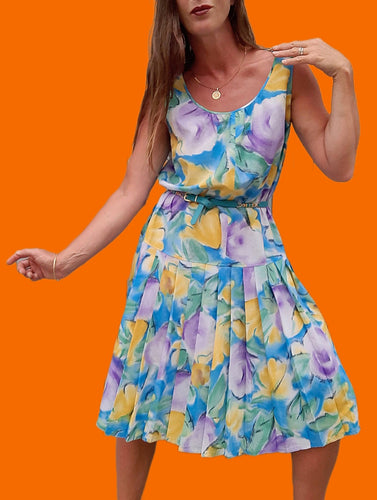 Robe vintage Lucia - Fleurie et plissée Taille L, 40, 42.